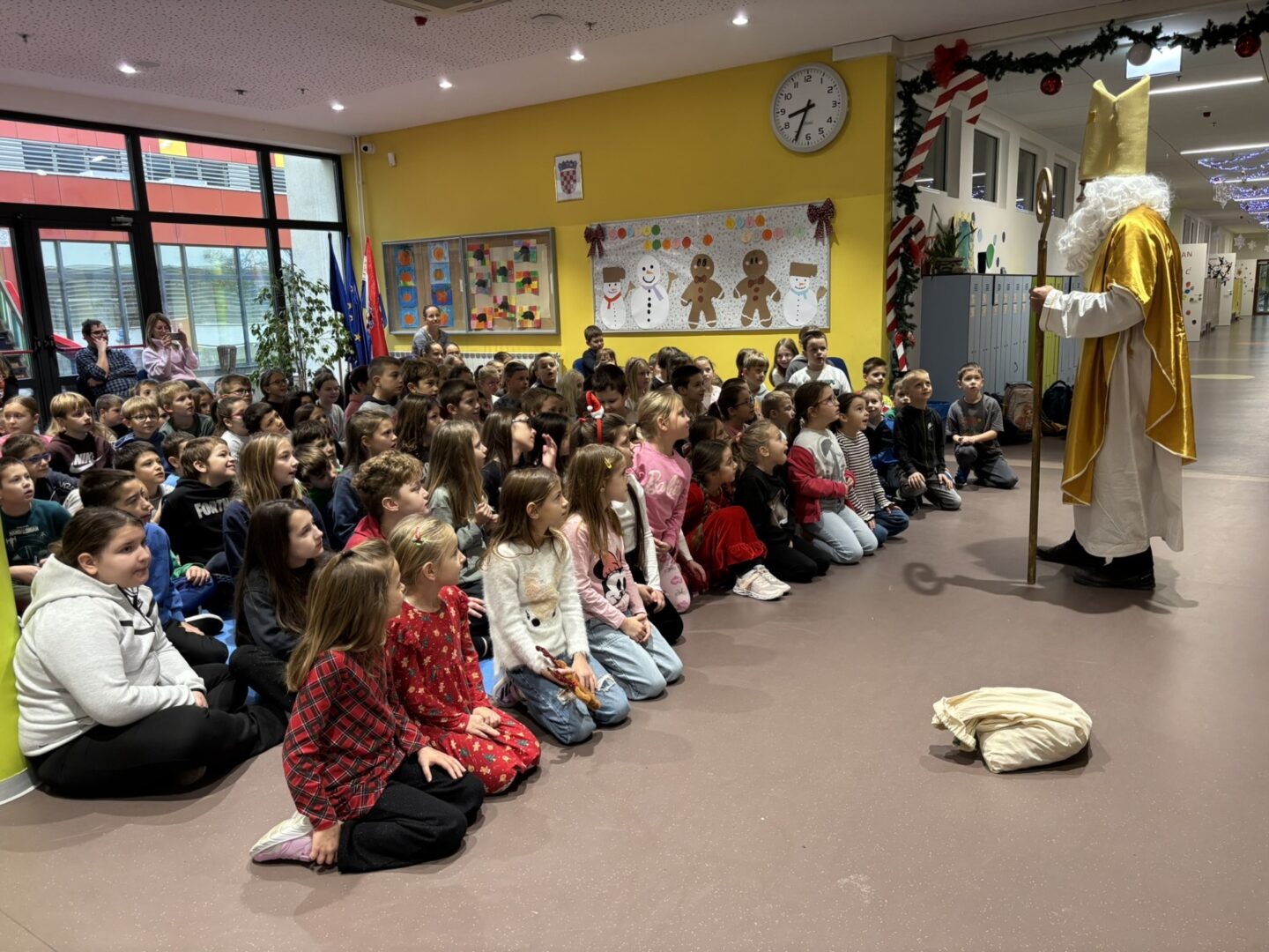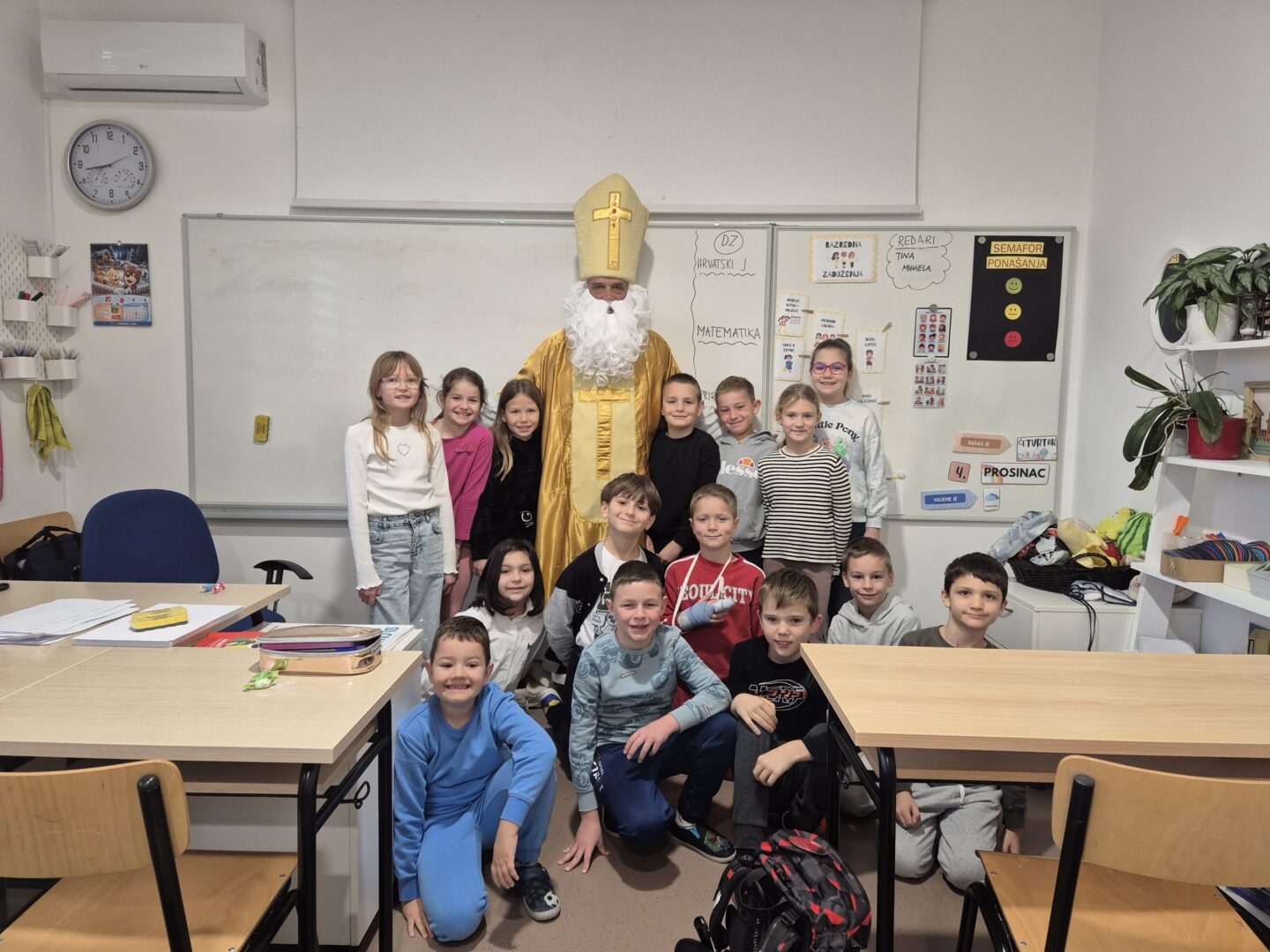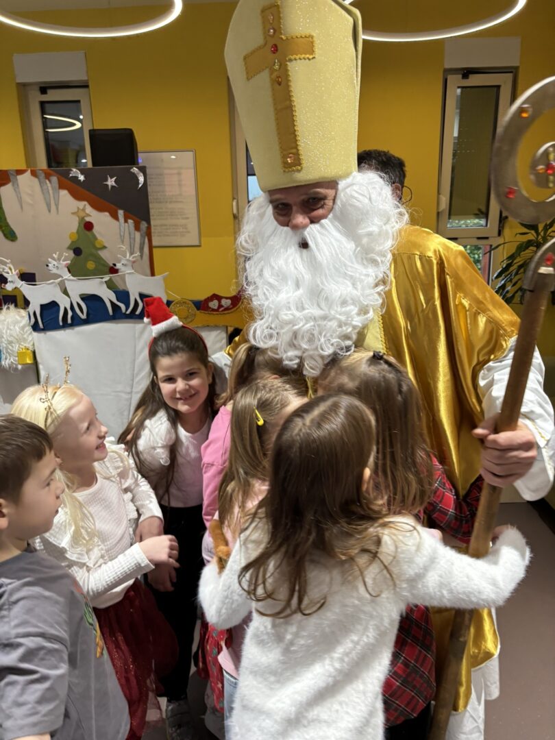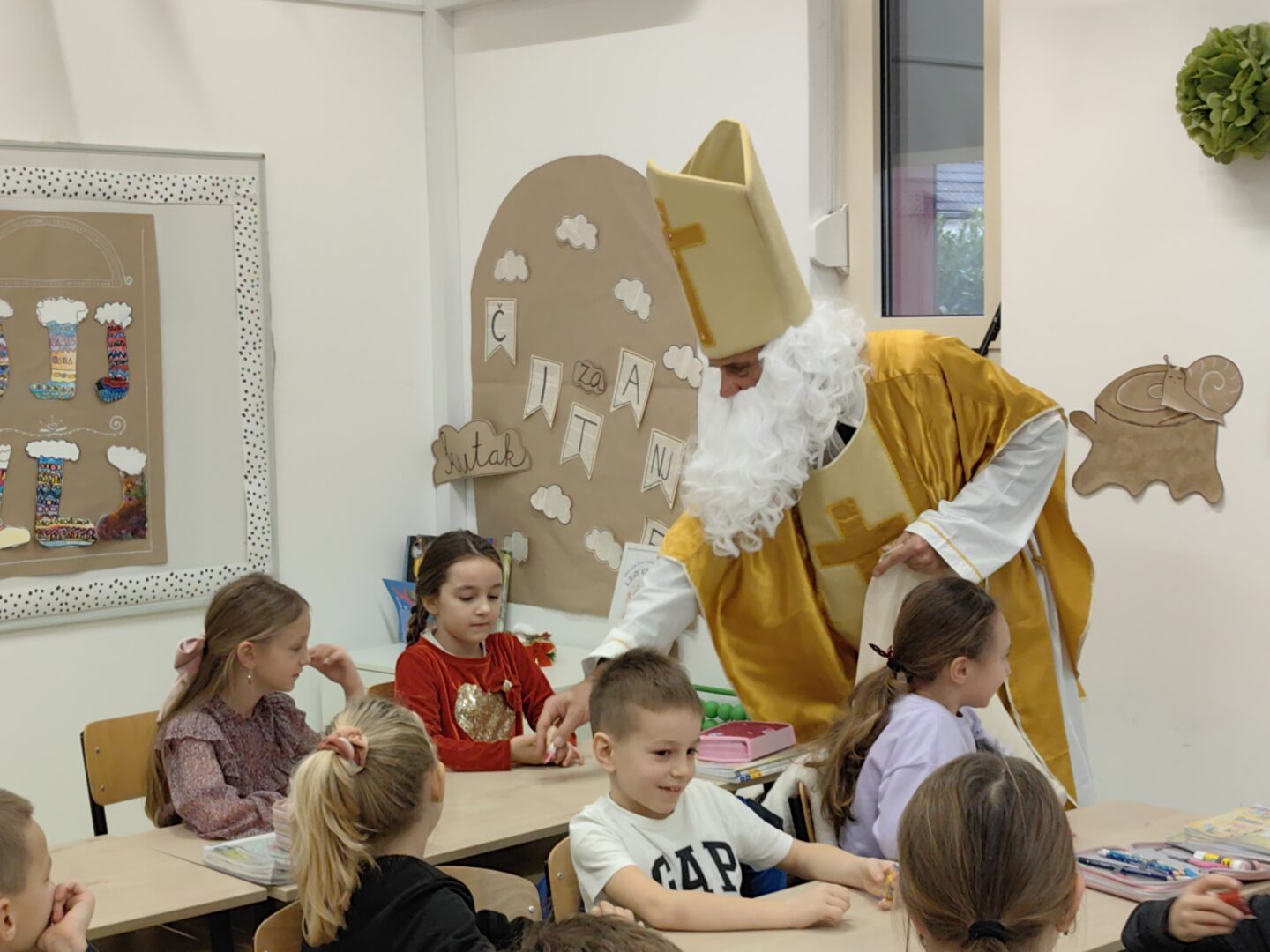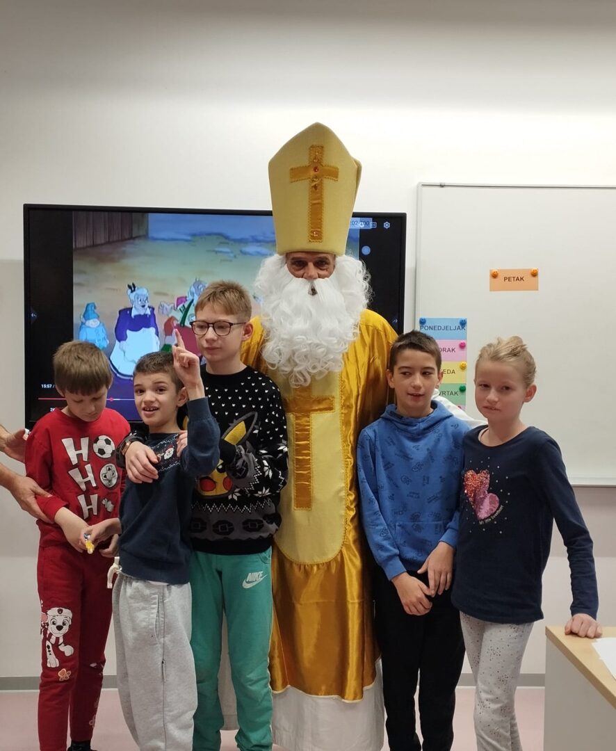 Nakon predstave učenike je iznenadio poseban gost – sveti Nikola! Dočekan je s puno veselja i osmijeha, a on je zauzvrat svima podijelio bombone te im poželio sreću, zdravlje i uspjeh u daljnjem školovanju.
