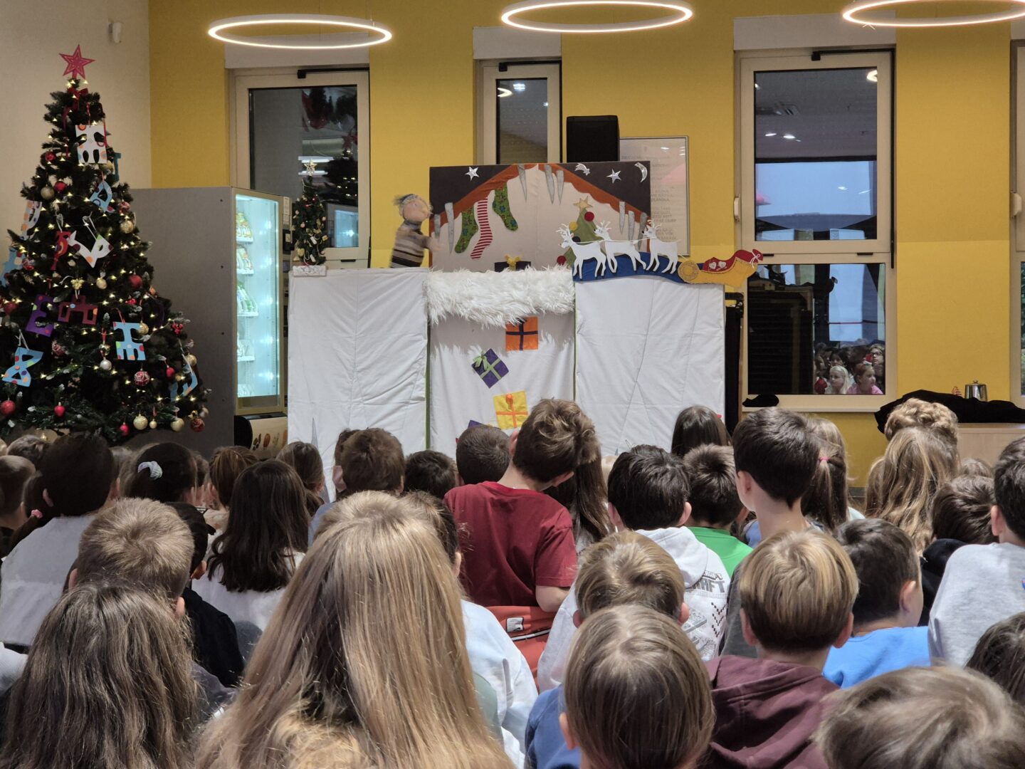 U našoj školi, u petak 5.12.2025., vladalo je posebno radosno ozračje. Učenici razredne nastave okupili  su se te su gledali prigodni božićni lutkarski mjuzikl Kako je dječak Srećko spasio Božić. Kroz glumu i pjesmu  izvođači su dočarali toplinu i veselje nadolazećih blagdana, a učenici su predstavu pratili s velikim zanimanjem.