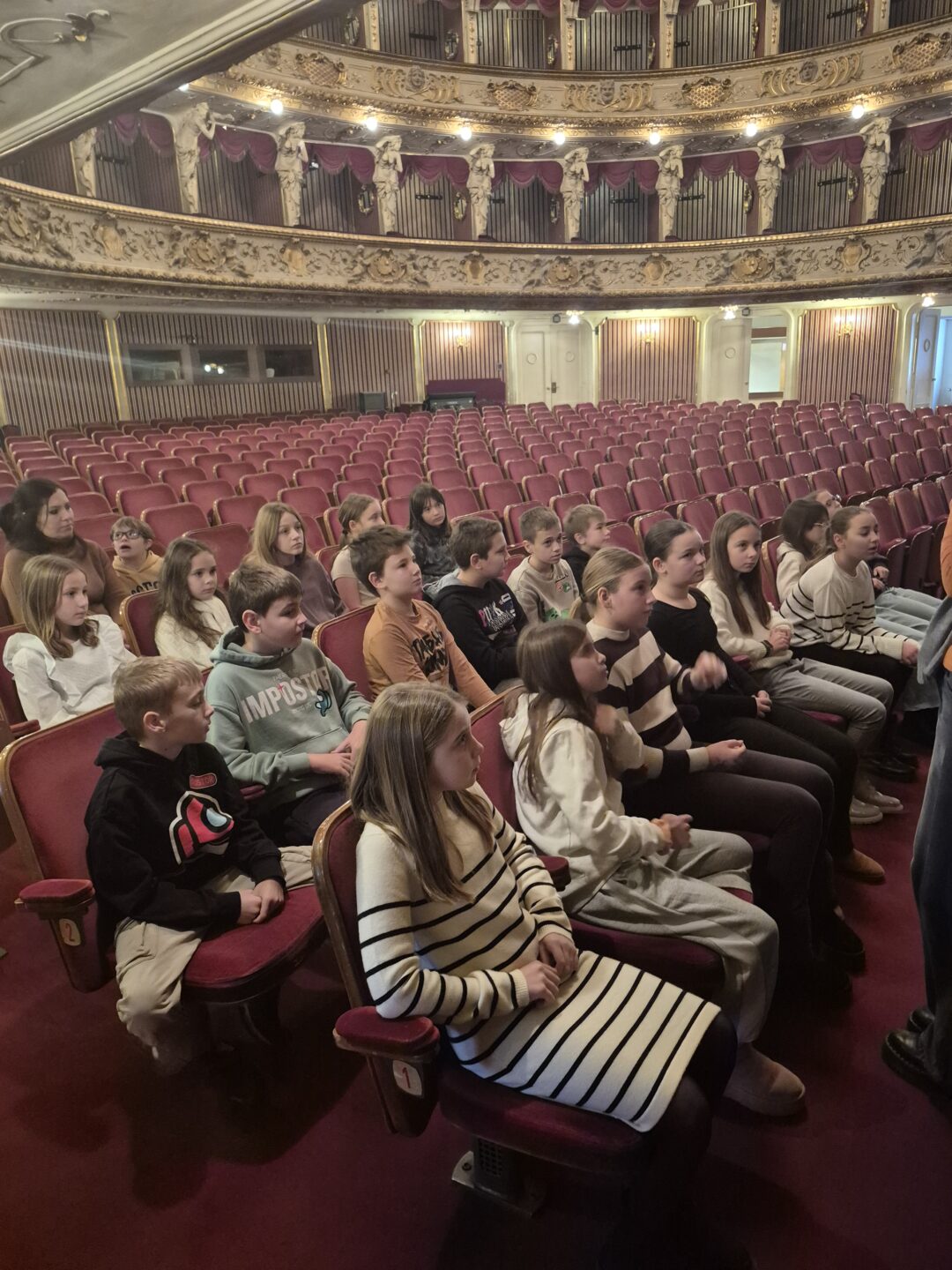 Dana 2. prosinca učenici četvrtih razreda, u pratnji svojih učiteljica Nikoline Grbac i Valentine Šušnjarac te učiteljice Glazbene kulture Renate Ivoš-Krajine, posjetili su Hrvatsko narodno kazalište u sklopu terenske nastave. Tijekom obilaska imali su priliku zaviriti iza pozornice, posjetiti gledalište, Zlatni salon i kazališne lože. Prošetali su i tunelom koji povezuje HNK s pomoćnom zgradom.